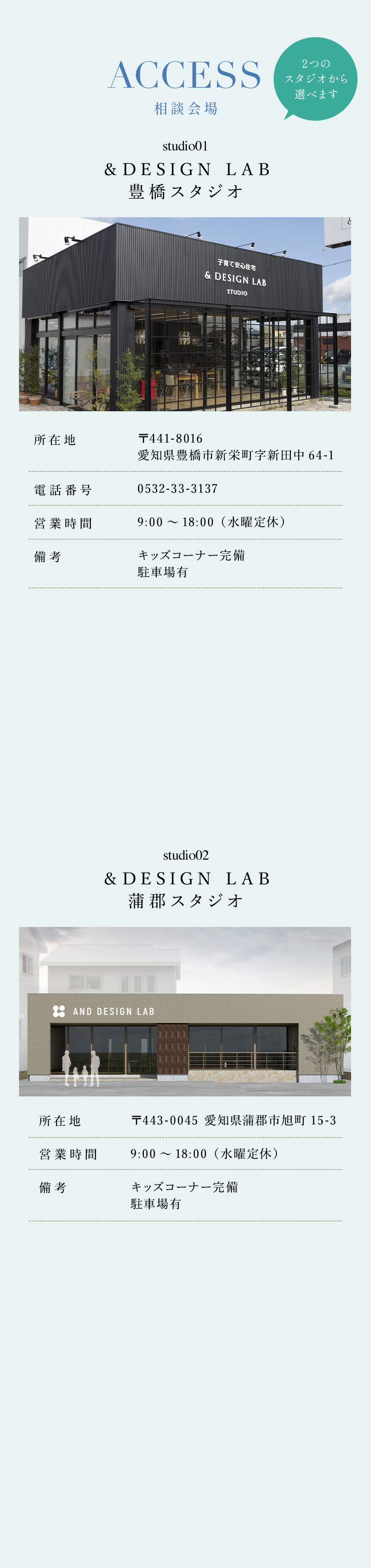 相談会場必須 豊橋スタジオ蒲郡スタジオ 来場希望日 ※当日・前日のご来場に関しましては、お電話にてご相談ください。 第一希望日必須 時間を選択してください10:00~11:00~12:00~13:00~14:00~15:00~16:00~17:00~ 第二希望日必須 時間を選択してください10:00~11:00~12:00~13:00~14:00~15:00~16:00~17:00~ お名前必須 メールアドレス必須 お電話番号必須 ご住所 郵便番号必須 都道府県必須 都道府県を選択北海道青森県岩手県宮城県秋田県山形県福島県茨城県栃木県群馬県埼玉県千葉県東京都神奈川県新潟県富山県石川県福井県山梨県長野県岐阜県静岡県愛知県三重県滋賀県京都府大阪府兵庫県奈良県和歌山県鳥取県島根県岡山県広島県山口県徳島県香川県愛媛県高知県福岡県佐賀県長崎県熊本県大分県宮崎県鹿児島県沖縄県 市区町村必須 番地・建物名必須 その他ご質問任意 【ご予約に関するご案内】 ご来店予約につきまして、同一時間帯に複数のご予約が重なった場合などには、弊社スタッフよりお電話にてご連絡を差し上げる場合がございます。 ご希望のお時間でのご案内が難しい場合は、できる限りご都合に合わせて日程を調整させていただきますので、どうぞご理解・ご協力のほどよろしくお願いいたします。 個人情報保護方針に同意する必須 弊社の個人情報保護方針を確認する