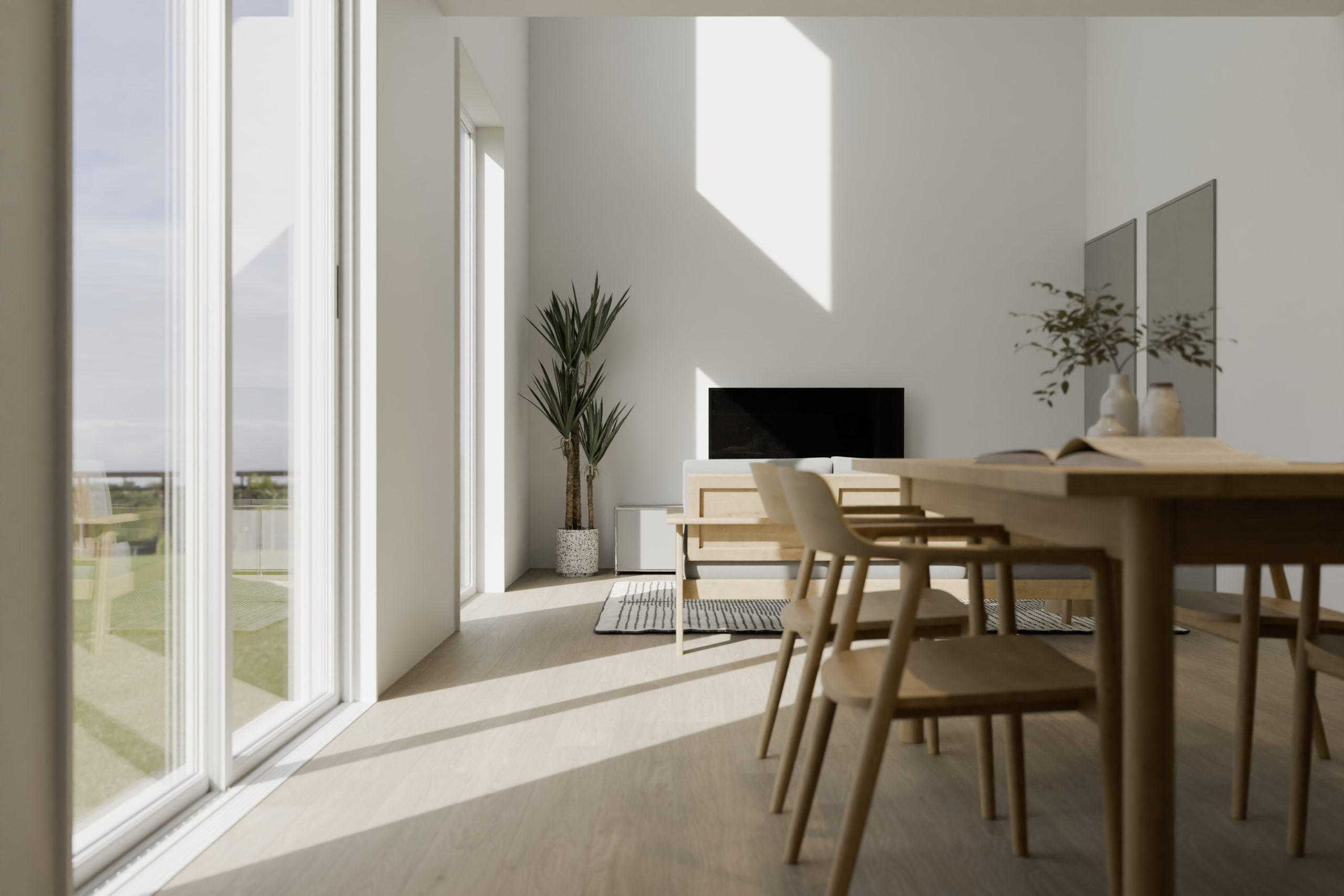 天井の高さから生まれる開放感はもちろん、窓からたっぷり差し込む自然光が、家全体を明るく、暖かい雰囲気で包み込みます。