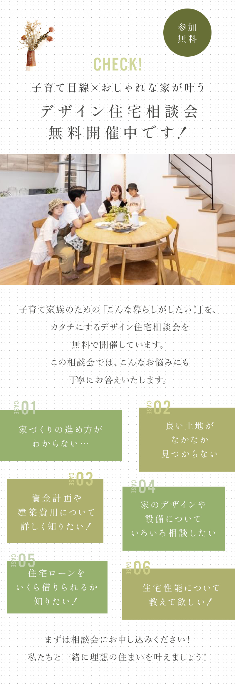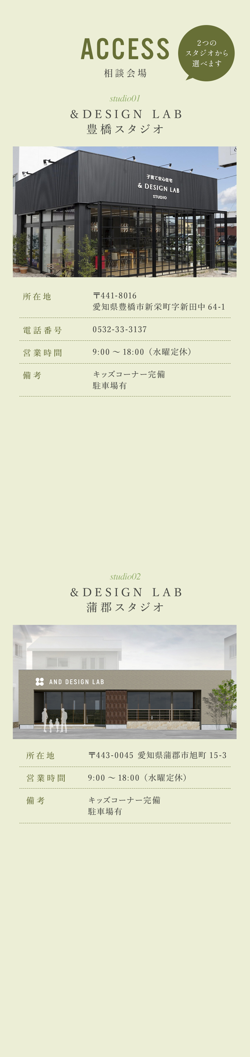相談会場 豊橋スタジオ蒲郡スタジオ 来場希望日 ※当日・前日のご来場に関しましては、お電話にてご相談ください。 ※本相談会は予約制とさせていただきます。 第一希望日 時間を選択してください10:00~11:00~12:00~13:00~14:00~15:00~16:00~17:00~ 第二希望日 時間を選択してください10:00~11:00~12:00~13:00~14:00~15:00~16:00~17:00~ お名前 メールアドレス 電話番号 その他気になることがあればご自由に 【ご予約に関するご案内】 ご来店予約につきまして、同一時間帯に複数のご予約が重なった場合などには、弊社スタッフよりお電話にてご連絡を差し上げる場合がございます。 ご希望のお時間でのご案内が難しい場合は、できる限りご都合に合わせて日程を調整させていただきますので、どうぞご理解・ご協力のほどよろしくお願いいたします。 下記を確認してください 弊社の個人情報保護方針を確認する 内容を確認し、同意しました。