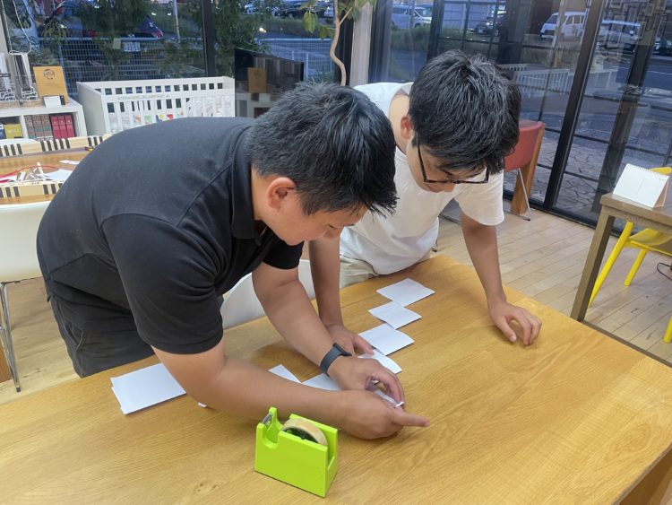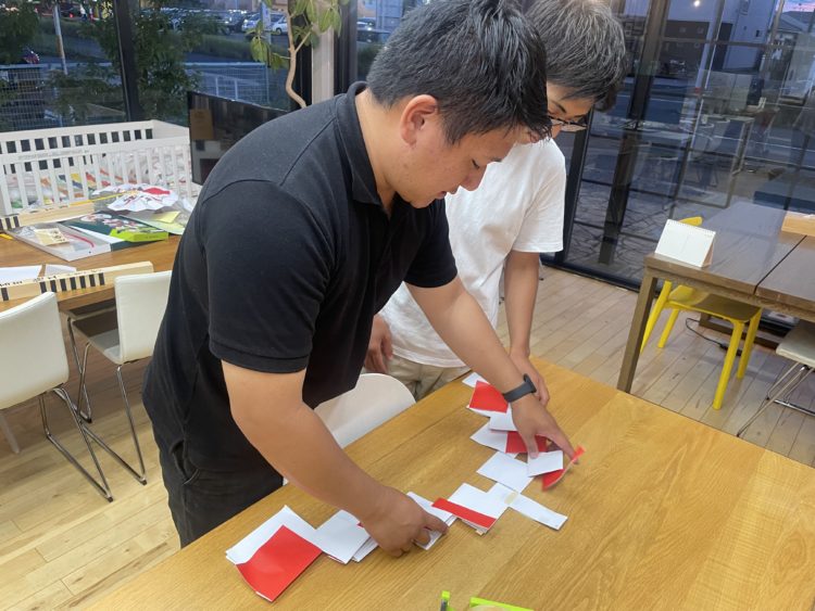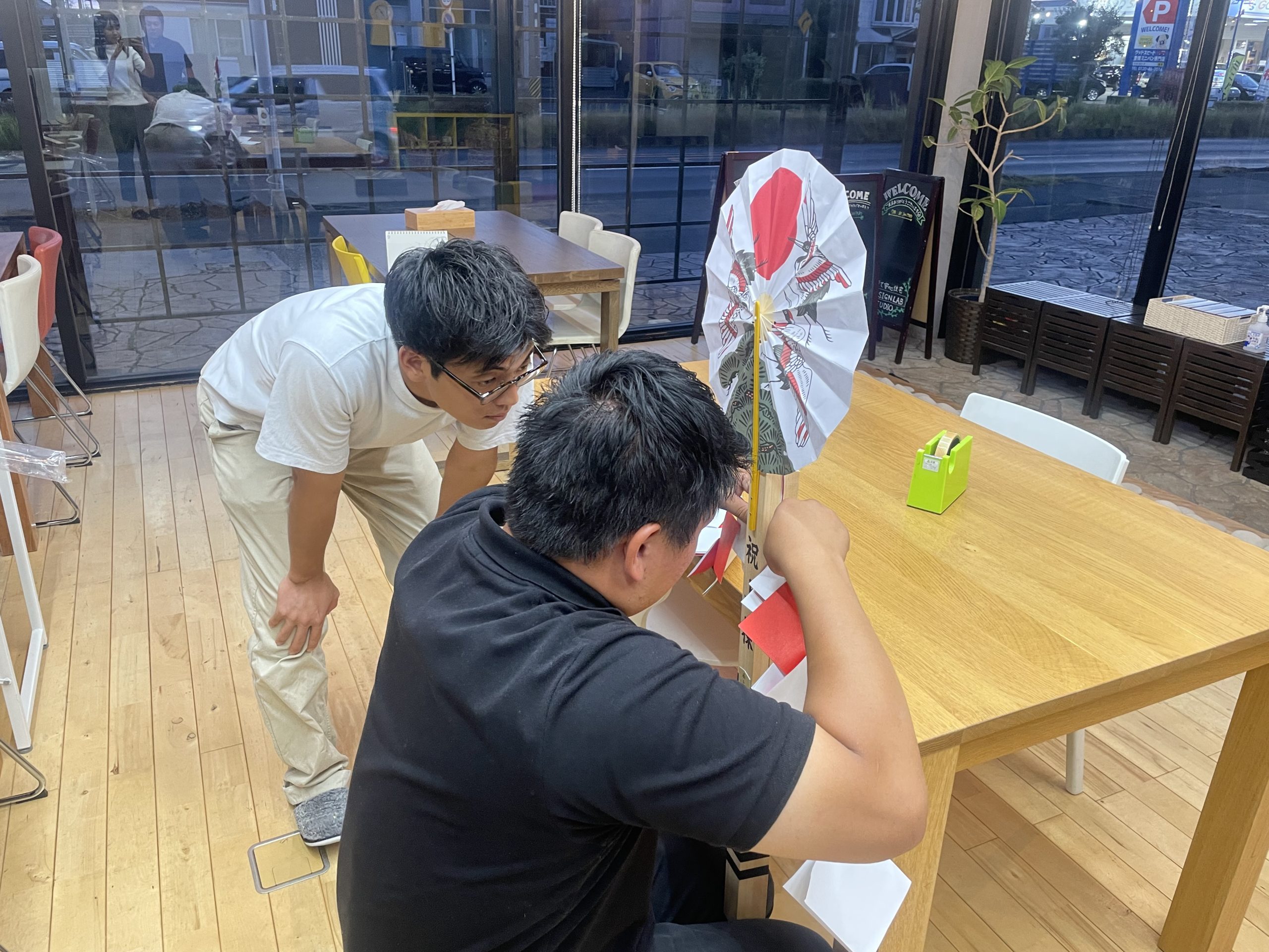 週末前には上棟飾り作り方を新卒1年目のスタッフへレクチャーしている様子も見られました。