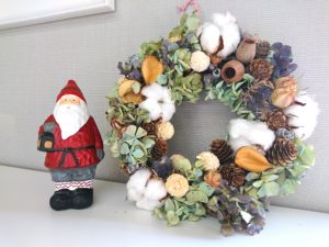 こちらのリースです!!なんと、お花屋さん自ら作ってくださったそうなんですが、お洒落ですよね✨