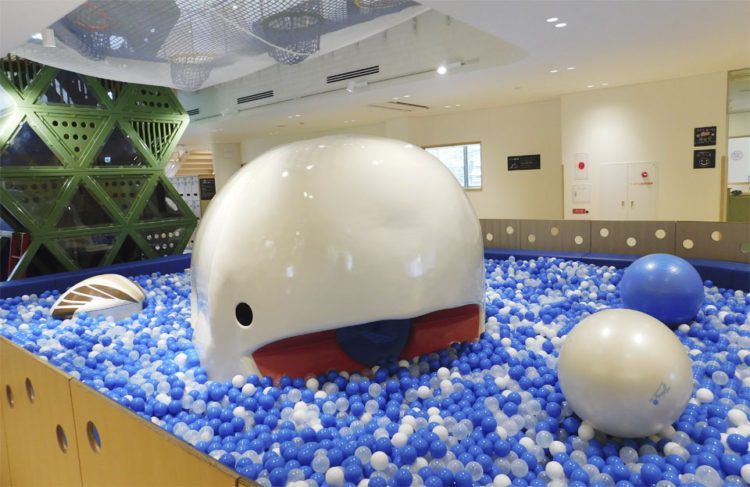 1階の「うみぞこひろば」には、海の中にいるような遊具に、かわいいスナメリの滑り台が設けてあります。