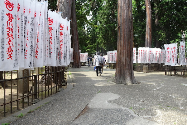 そのような風景は見られません。その代わり、「千本のぼり」と呼ばれるのぼりが境内に無数に立ち並んでいます。