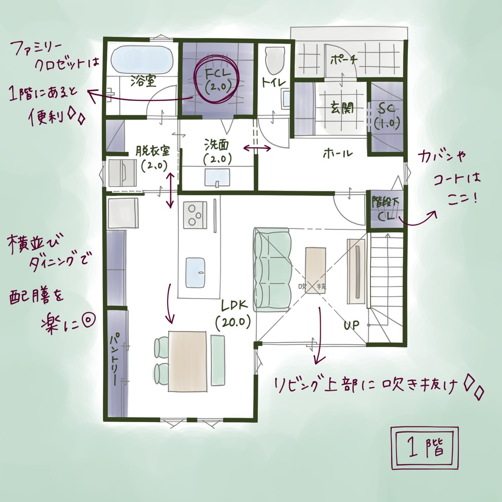 特にゆとりの時間が生まれるように、家事と育児の動線などに気を遣いました。