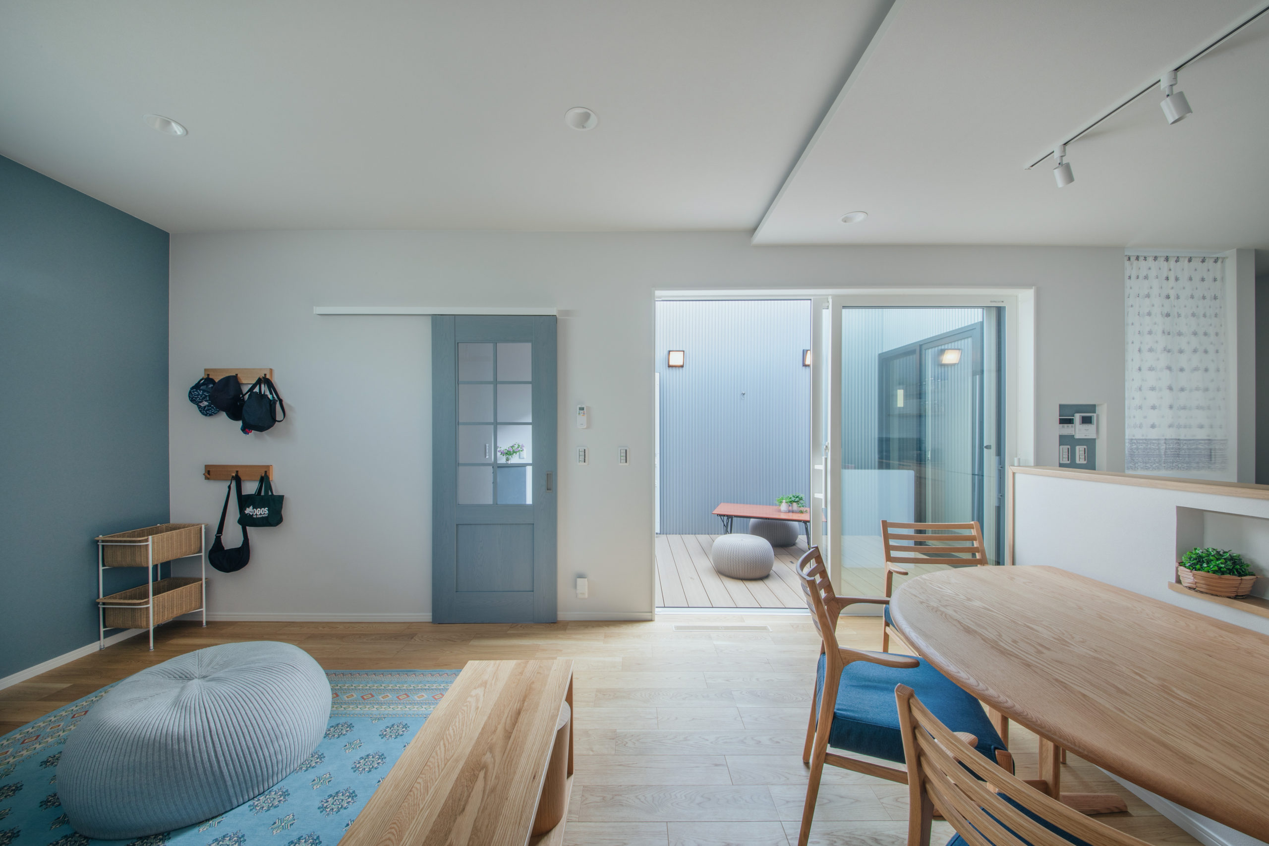 2~3枚の片引きタイプや引分タイプの引き戸・吊戸が向いています。特に吊戸は床面にレールがないため、すっきりとした印象になります。