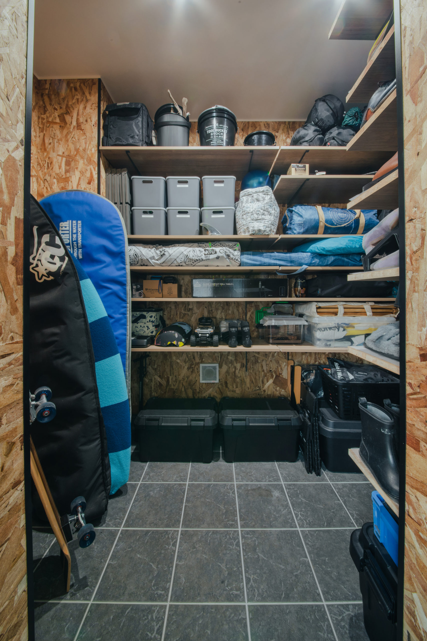 収納の種類も、完全にカスタマイズ可能。靴やコート類はもちろん、アウトドアギアや子どもの遊び道具まで、家族の持ち物に合わせた収納プランを実現できます。市販の下駄箱では収まりきらないブーツや長靴も、オリジナルの収納スペースなら問題なくしまえます。