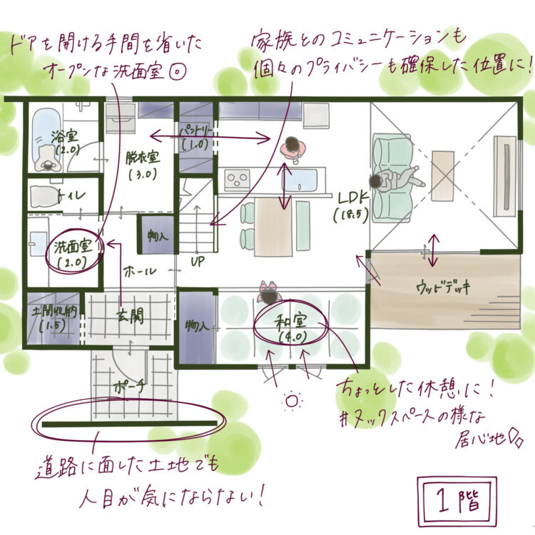 特にゆとりの時間が生まれるように、家事と育児の動線などに気を遣いました。