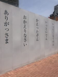 名豊ビルの後ろ側の工事をしている壁にたくさんの文字が…👀