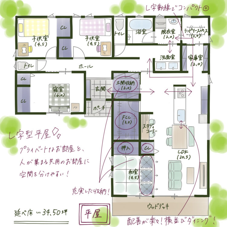 家事動線とプライバシーを両立した理想のL字型平屋住宅