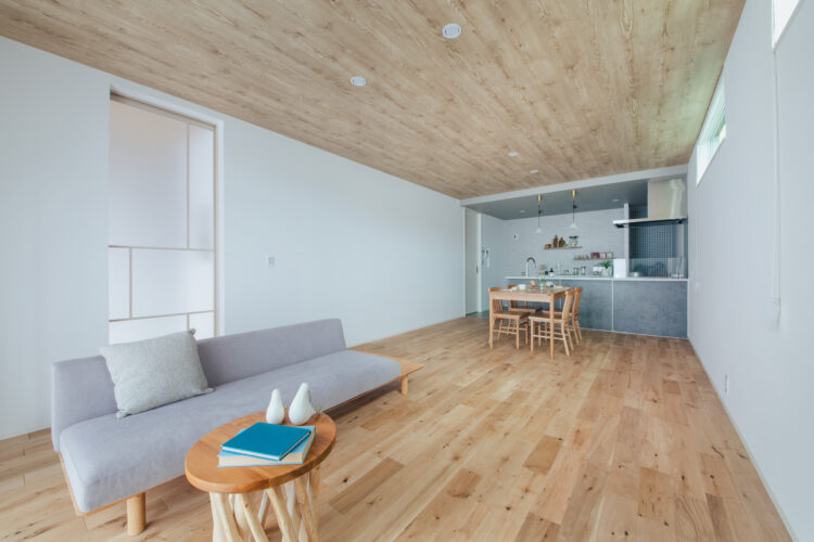 この間取りの最大の魅力は、吊り押入れと地窓を採用した和室と、LDKとのつながりです。扉を開け放つと、LDKと和室が一体となり、広々とした開放的な空間が生まれます。来客時にはもちろん、普段は家族みんなのくつろぎスペースとして、自由に使えます。