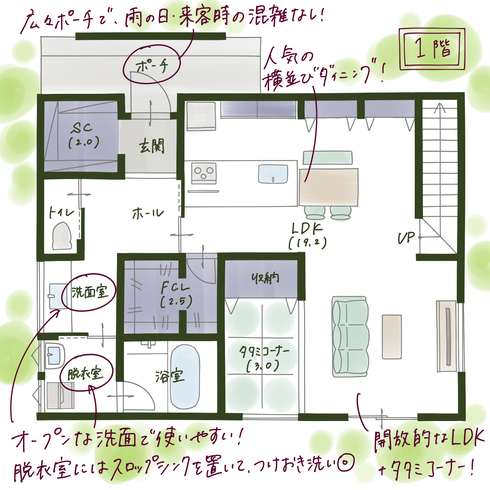 ご紹介する間取りは、すべて実際のお施主様の声やライフスタイルをもとに設計したプラン。