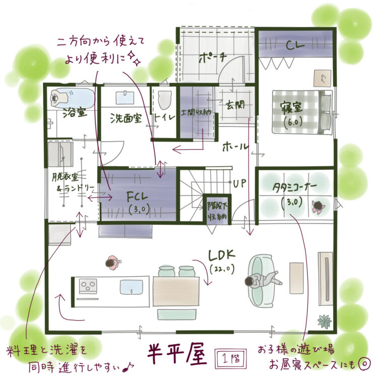 家事ラク動線や育児しやすいレイアウトなど、