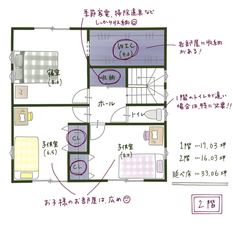 4 2階は「収納力」が決め手!各部屋クローゼット+大型WIC