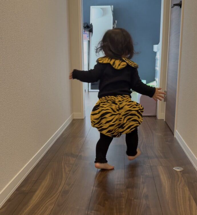 妻が買ってきた鬼の服を着た娘なのですが……これがもう、親バカながら「めちゃくちゃ可愛い!」の一言(笑)。