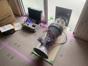 気密測定とは家の空気を抜いていって家全体でどのくらいの隙間があるのかを調べる検査のことです(^^)