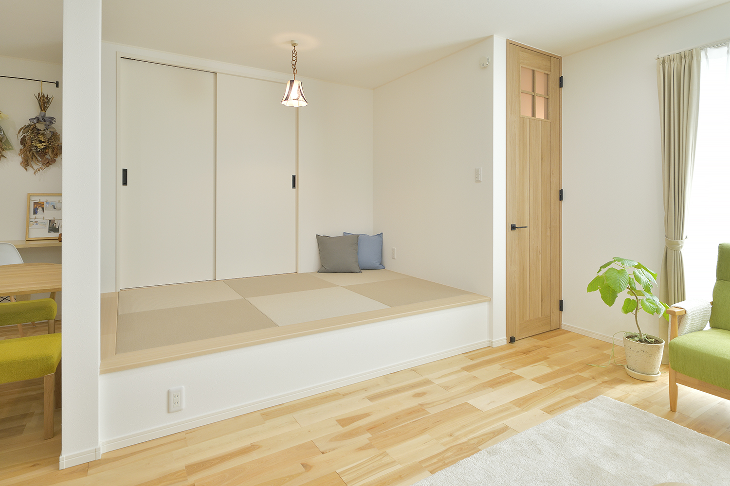 はる向きを変えるだけで色が違って見える、タタミの特徴を活かしています☺️