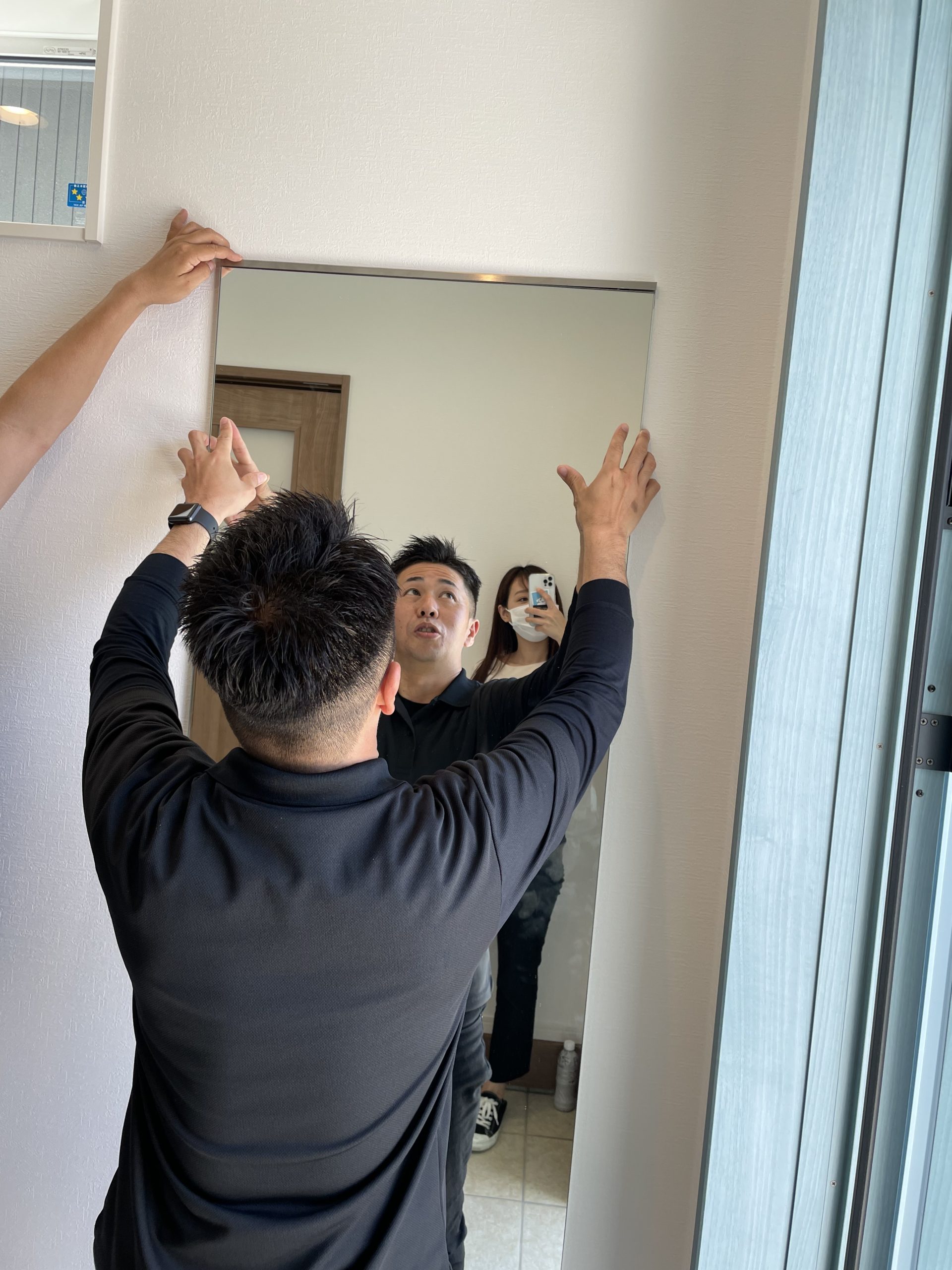 玄関に鏡を取り付けている様子を見学しました👀✨
