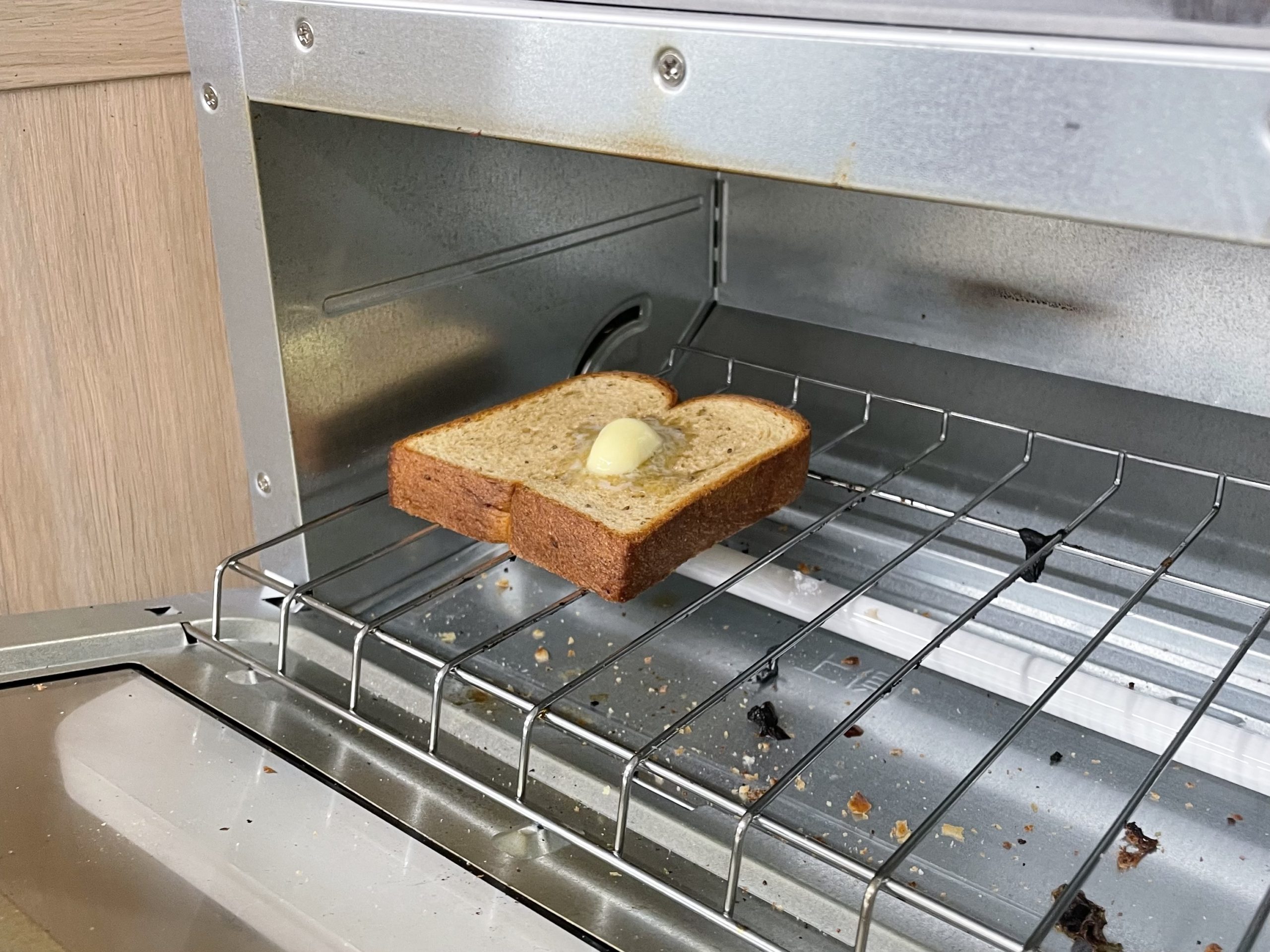 匂いにつられて見に行くと、岩室がトースターでパンを焼いていました☺✨