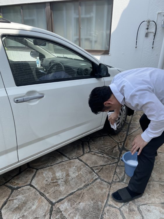 朝から代表の木越が車を手洗い洗車する姿が・・・!