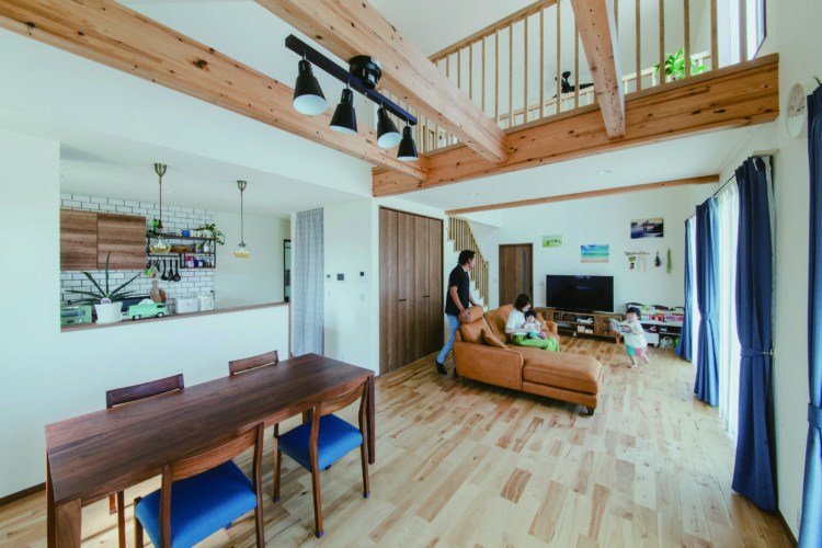 吹き抜けに面したロフト風の2階は