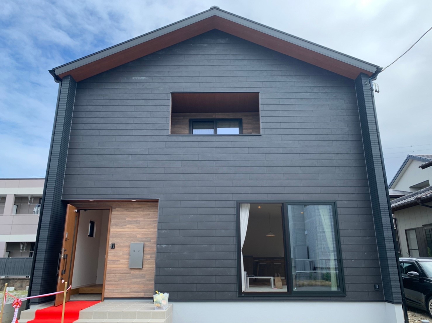 このお家はベランダ部分を木目で統一していますね☺️