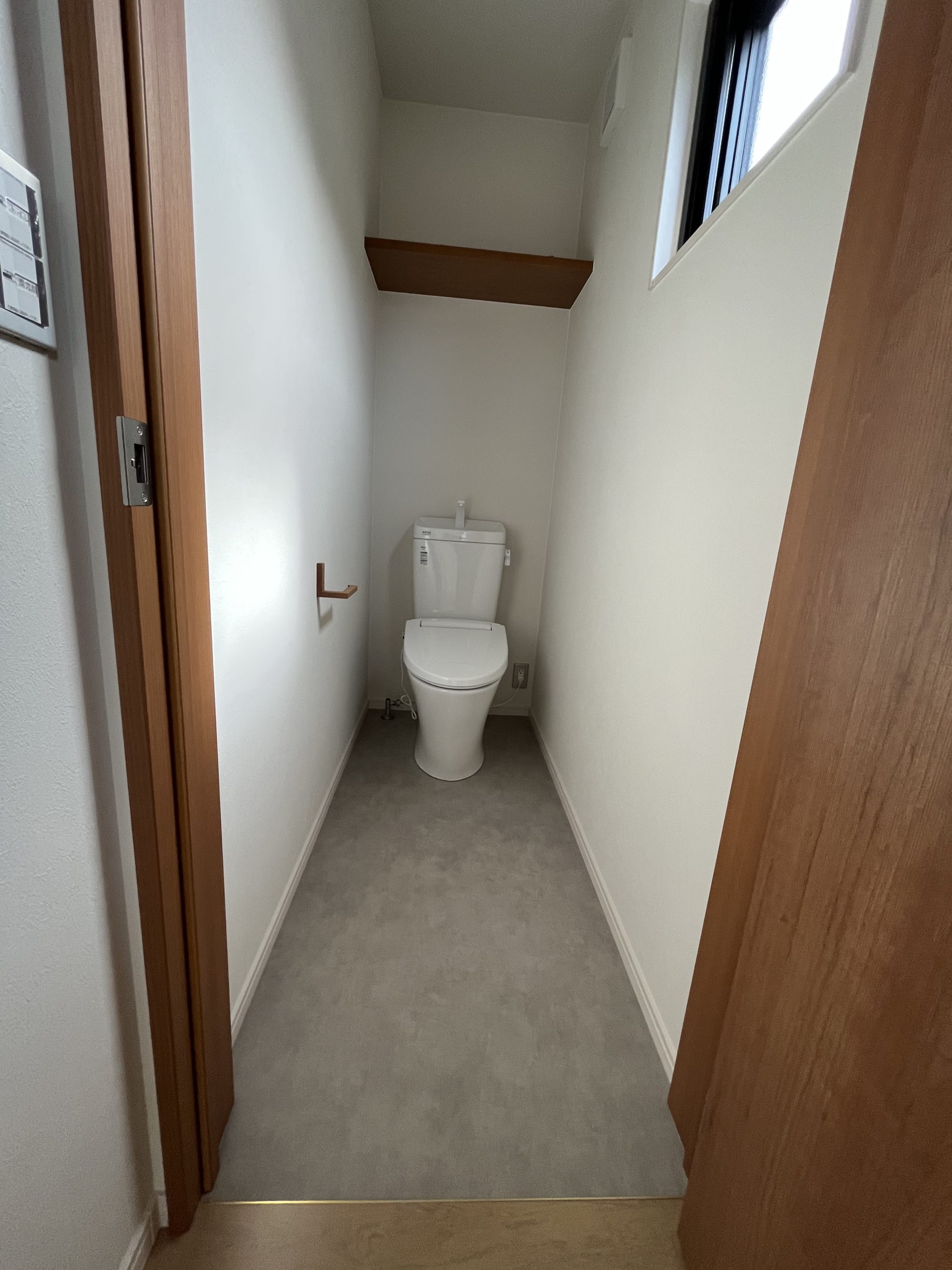 扉色とカウンター、ペーパーホルダーの木目の色を合わせており