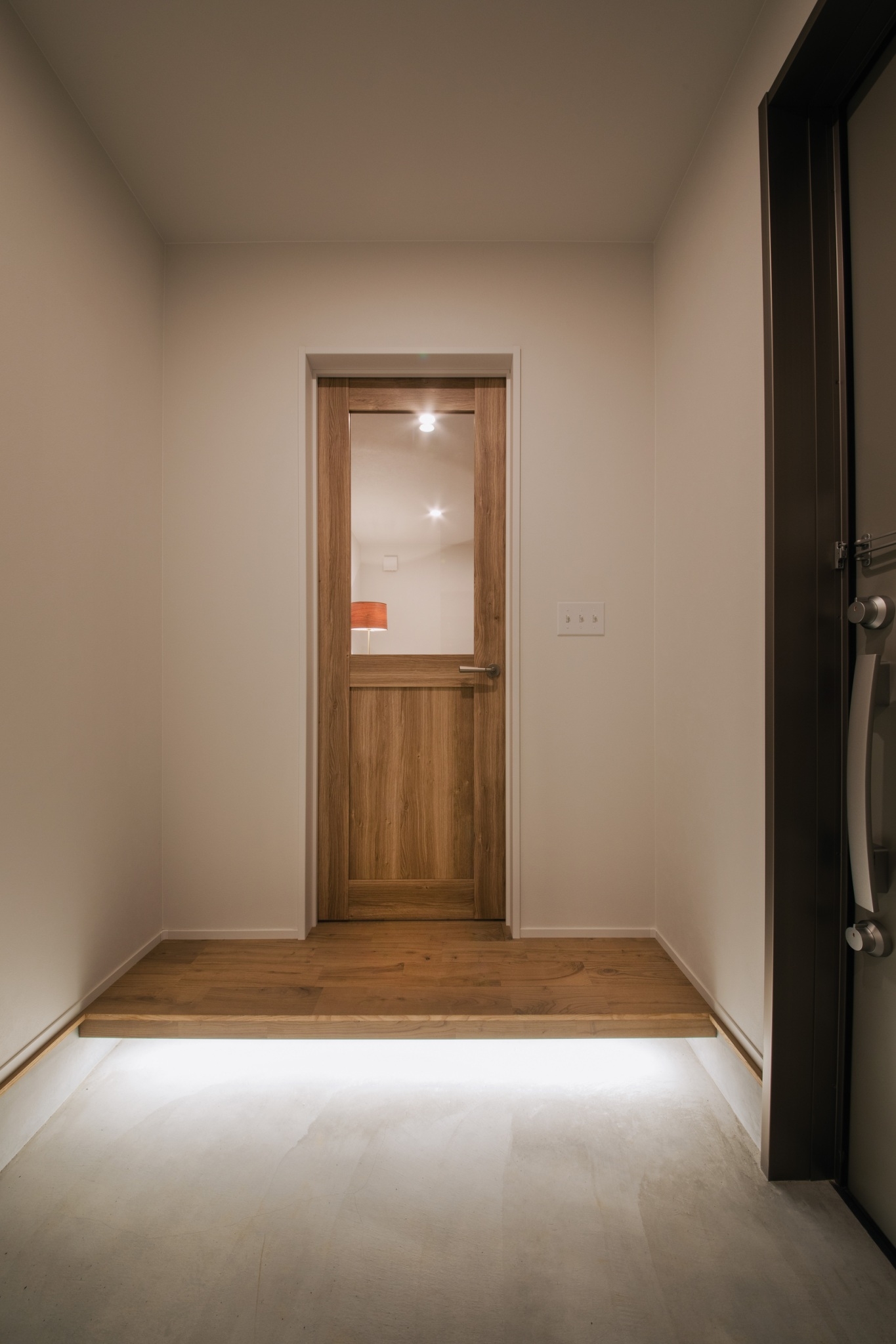 玄関ホール下には間接照明。
