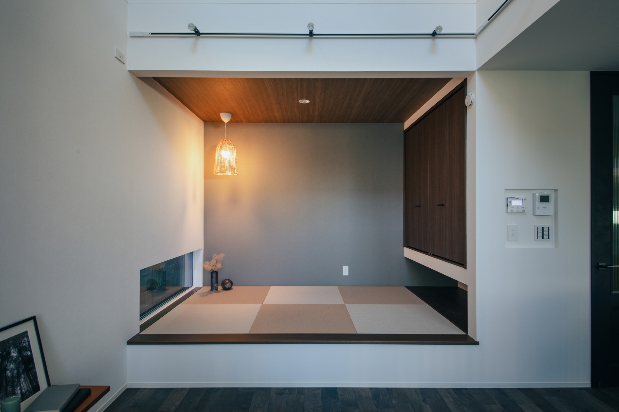 ロールカーテンを下げれば個室として、カーテンを上げればオープンなリビングの一部として