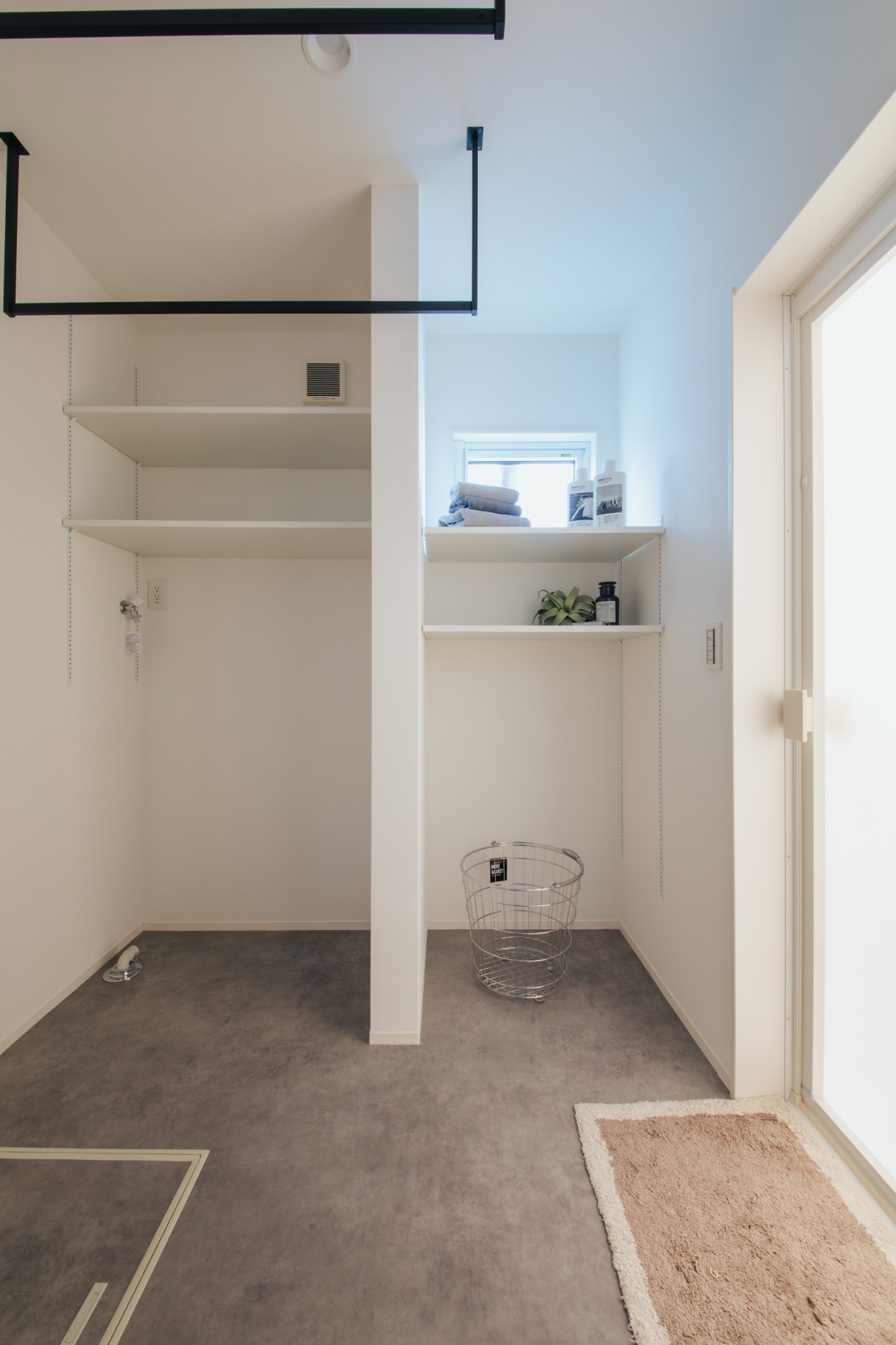 アイアンバーを設け洗濯→干すまでの作業を一カ所で完結。