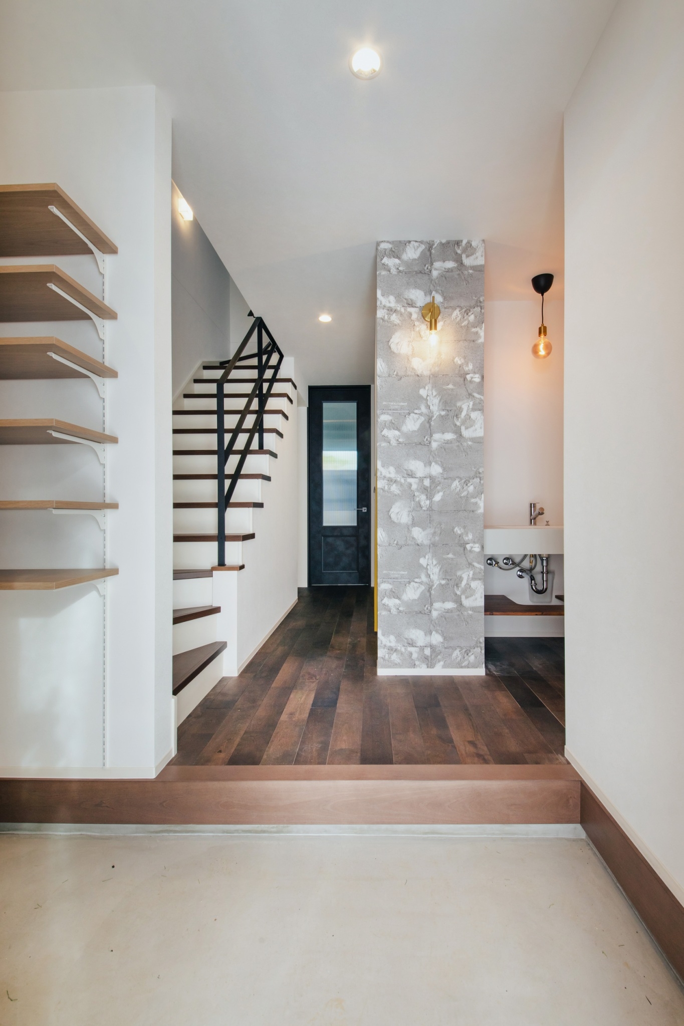アイアン手摺にすることで、圧迫感を持たせず階段を配置することができます。