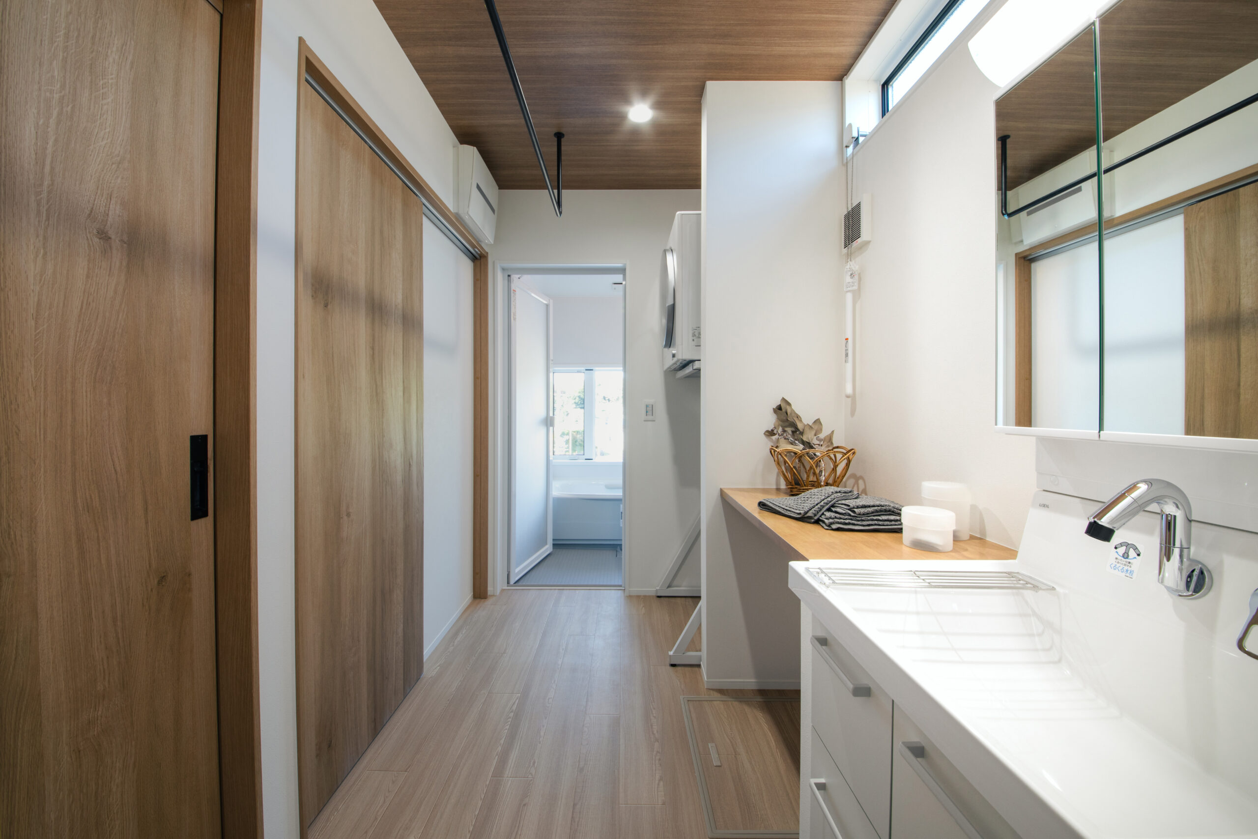 洗面・ランドリー・脱衣室を一直線に配置した、家事がサッと片付くサニタリー動線。