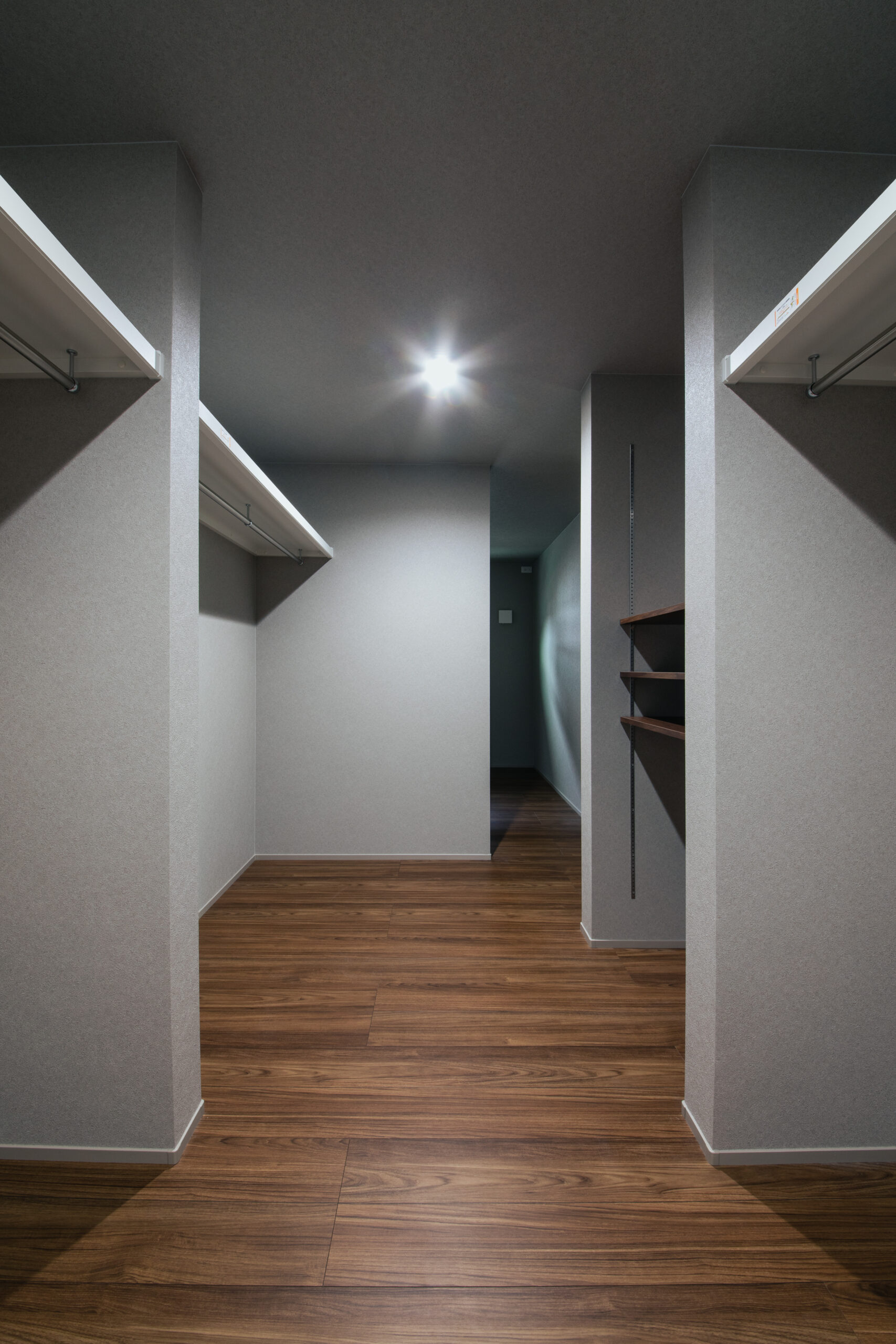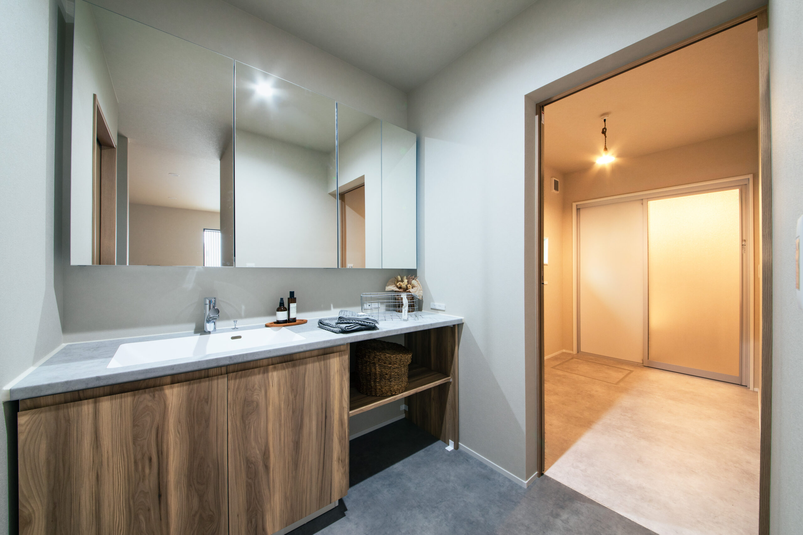 洗面から脱衣室へとつながる配置で、身支度や家事がスムーズに進む、使い勝手のよい設計です。