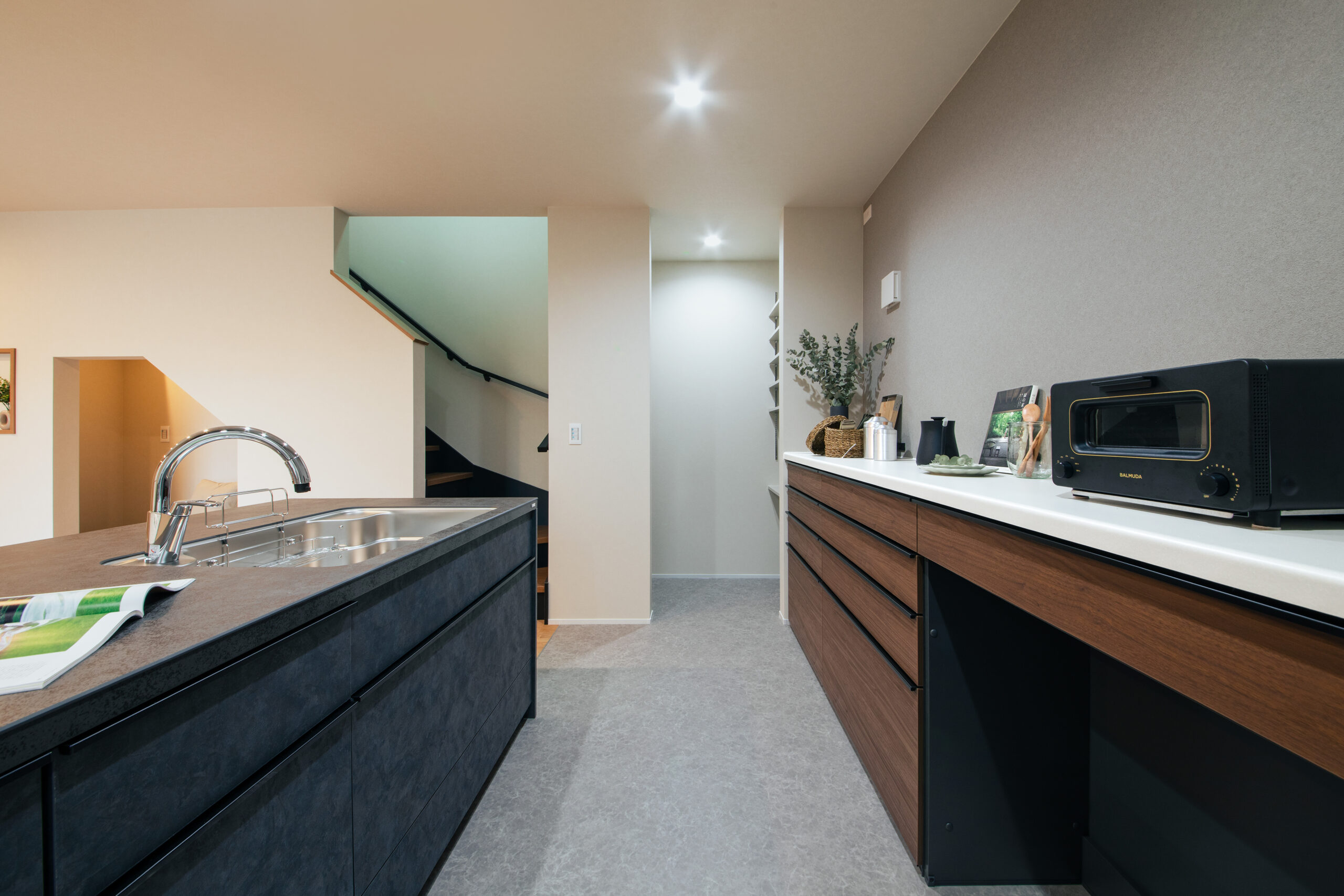 作業スペースと収納をしっかり確保し、家事がスムーズに進む設計に。