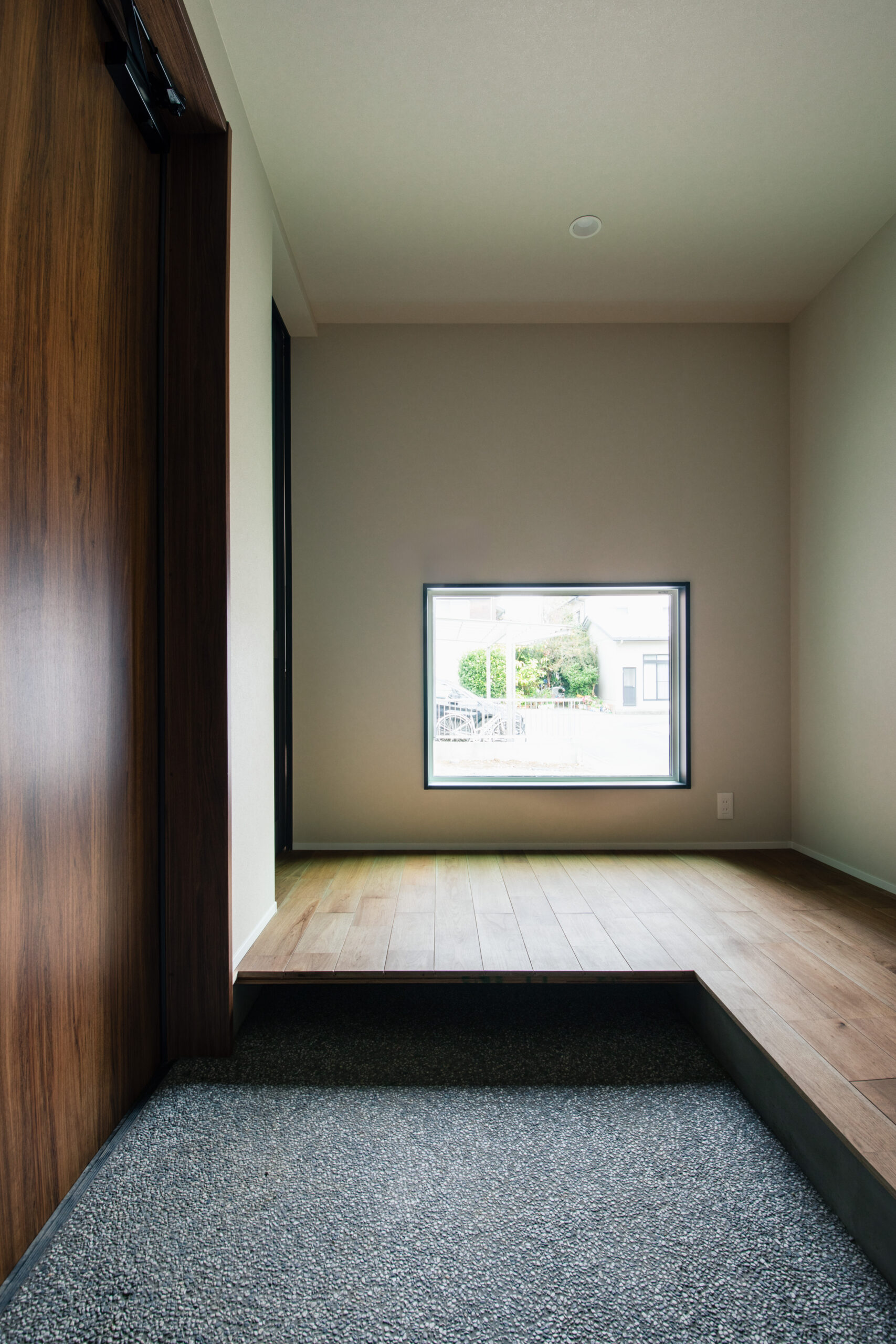 外からの光をやさしく取り込む、シンプルで落ち着いた玄関。